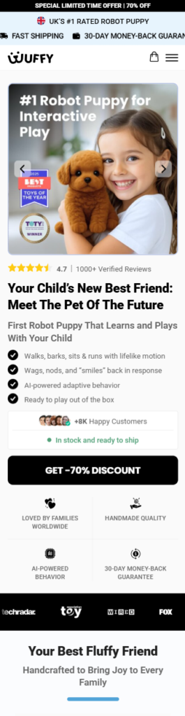 Get the authentic Wuffy Robot Puppy today. Our current promotion features a 70% price reduction from the original retail value. We offer multiple bundle options to ensure every child has a companion, backed by our official UK satisfaction policy.